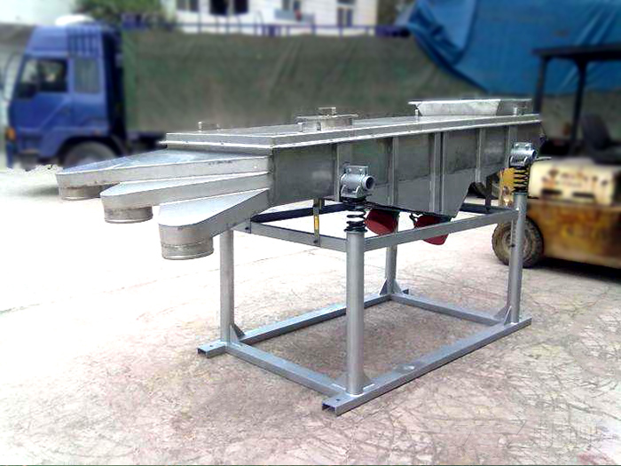 產品介紹: DZSF系列菊花直線振動篩為雙振動電機驅動。當兩臺振動電機做同步、反向旋轉時,其偏心塊所產生的激振力在平行于電機軸線的方向相互抵消,在垂直于電機軸的方向疊為一合力,因此篩機的運動軌跡為一直線。兩電機軸相對篩面在垂直方向有一傾角,在激振力和物料自重力的合力作用下,物料在篩面上被拋起跳躍或向前作直線運動,從而達到對物料進行篩選和分級的目的。適用于粒度在0.074—5mm,含水量小于7%,無粘性的各種干式粉狀或顆粒狀物料的篩分。最大給料粒度不大于10mm.。