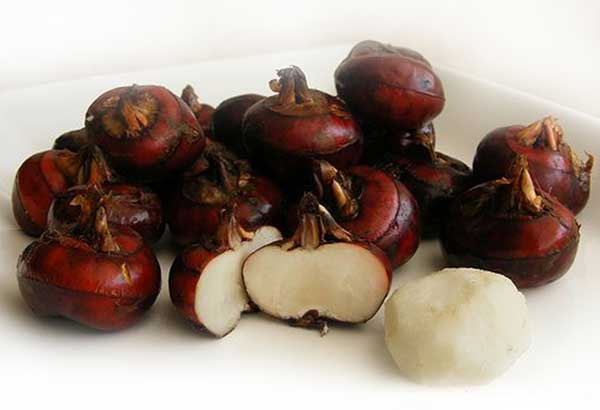 荸薺,又名 馬蹄、茨瓜兒(通俗叫法)、水栗、芍、鳧茈、烏芋、菩薺、地梨、皮丘兒、薺米,是莎草科荸 薺屬種。莎草科荸薺屬淺水性宿根草本,以 球 莖作蔬菜食用。古稱鳧茈(鳧茈),俗稱馬蹄,又稱地栗,因它形如馬蹄,又像栗子而 得名。稱它馬蹄,僅指其外表;說(shuō)它像栗子,不僅是形狀,連性味、成分、功用都與栗子相似,又因它是在泥中結(jié)果,所以有地栗之稱。