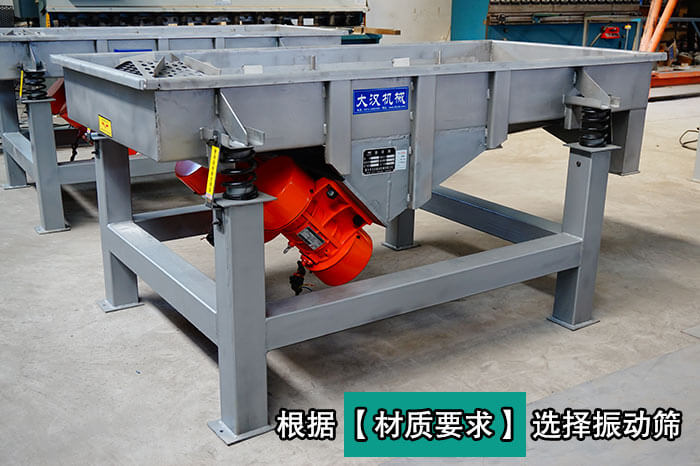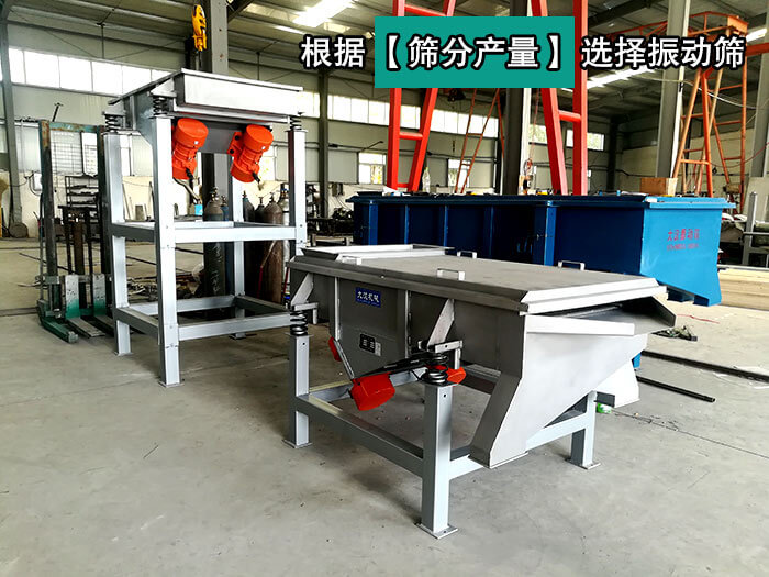 產量低時,可選用小型號的直線振動篩,如;產量高時,可選用大型號的直線振動篩,如電機功率也需要根據直線振動篩產量大小來選擇合適的型號。