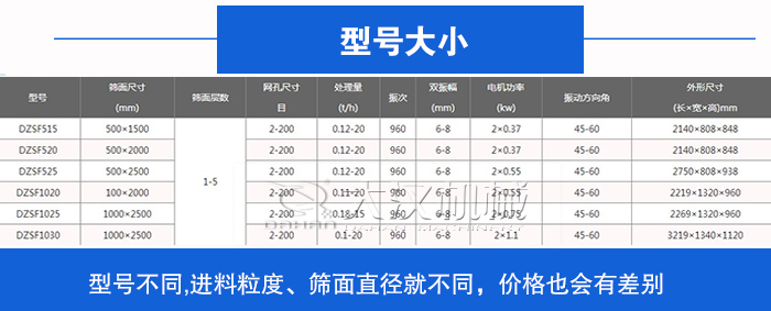 鋼纖維直線振動篩有DZSF-515、DZSF-520、DZSF-530、DZSF-1020、DZSF-1030、DZSF-1540等標準型號,因型號的不同他們的進料粒度、篩面直徑存在較大的差異,在生產(chǎn)中可以為用戶帶來的市場盈利也有所不同,進而廠家對于市場上型號不同的鋼纖維直線振動篩價格定位也有區(qū)別。