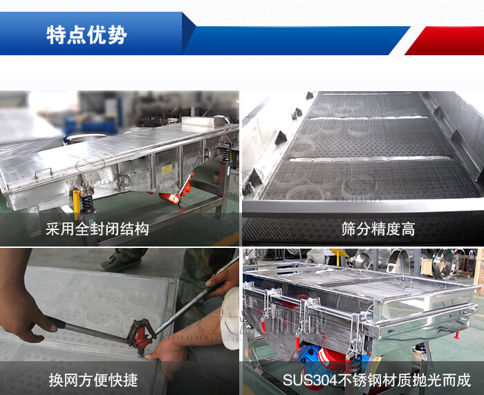 產品介紹:食品直線振動篩是專為食品行業設計的一種食品振動篩設備,篩機內外進行拋光處理,材質選擇304不銹鋼材質,符合食品行業衛生標準。