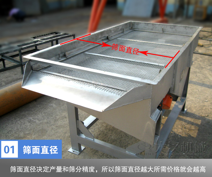 對(duì)于直線(xiàn)振動(dòng)篩篩來(lái)說(shuō),其篩面直徑?jīng)Q定產(chǎn)量和篩分精度,所以篩面直徑越大所需價(jià)格就會(huì)越高,而用戶(hù)在選購(gòu)時(shí)請(qǐng)根據(jù)自身生產(chǎn)要求合理選擇;。