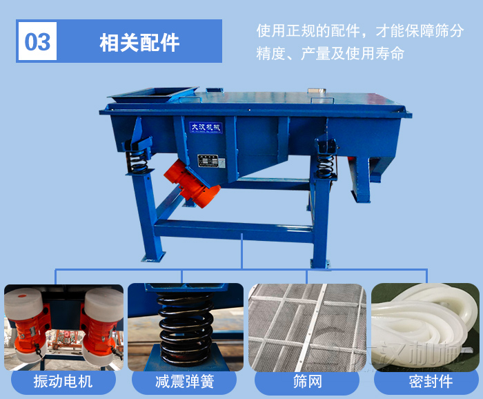直線(xiàn)振動(dòng)篩的配件包含:振動(dòng)電機(jī)、減震彈簧、密封件、篩網(wǎng)、清網(wǎng)裝置,振動(dòng)電機(jī)作為臺(tái)篩分設(shè)備的動(dòng)力源其優(yōu)劣直接關(guān)系到設(shè)備的產(chǎn)量與使用壽命,篩網(wǎng)的選用也應(yīng)該注重篩網(wǎng)的絲經(jīng)、材質(zhì),配件需要有正規(guī)的配件供應(yīng)商提供,這樣才能保障篩分精度、產(chǎn)量及使用壽命,而選擇不同配置的設(shè)備,其價(jià)格勢(shì)必會(huì)有所影響,舉例來(lái)說(shuō),防爆電機(jī)與普通電機(jī)相比,價(jià)格會(huì)貴200-300元,非金屬篩網(wǎng)相較金屬篩網(wǎng)會(huì)便宜50%。