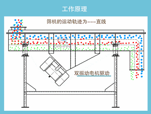 不銹鋼直線振動篩工作原理可分為動力來源、運動傳遞、物料分離三個環節,雙軸振動電機為設備提供動力、篩體作直線往復振動進行動力傳遞,在直線振動和篩面傾角的共同作用下,會經歷分層-透篩-分離的過程。