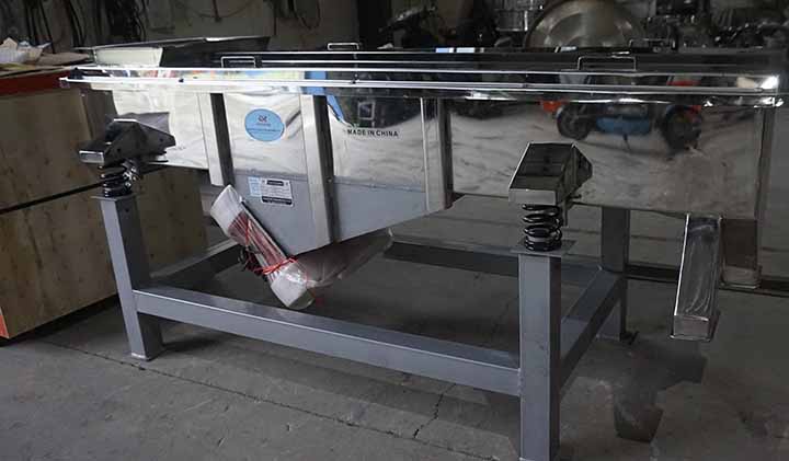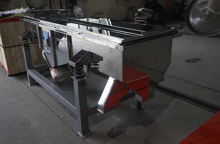 不銹鋼直線振動篩的篩面通常設計為5°-15° 的微小傾角,通過2-5 層不銹鋼篩網把濕的、易腐蝕的物料篩分為400目以內。